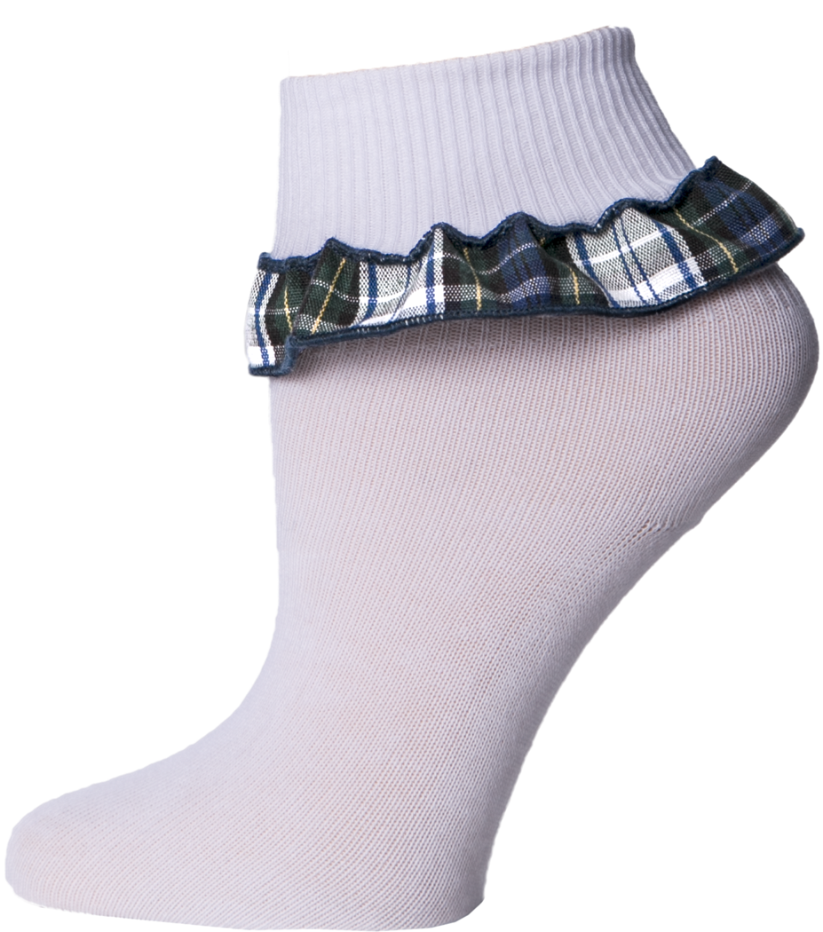 Our fun Plaid Ruffle Anklet socks are a playful accessory item that students love to wear. They add an eye-catching pop of print that goes especially well with skirts and skorts!