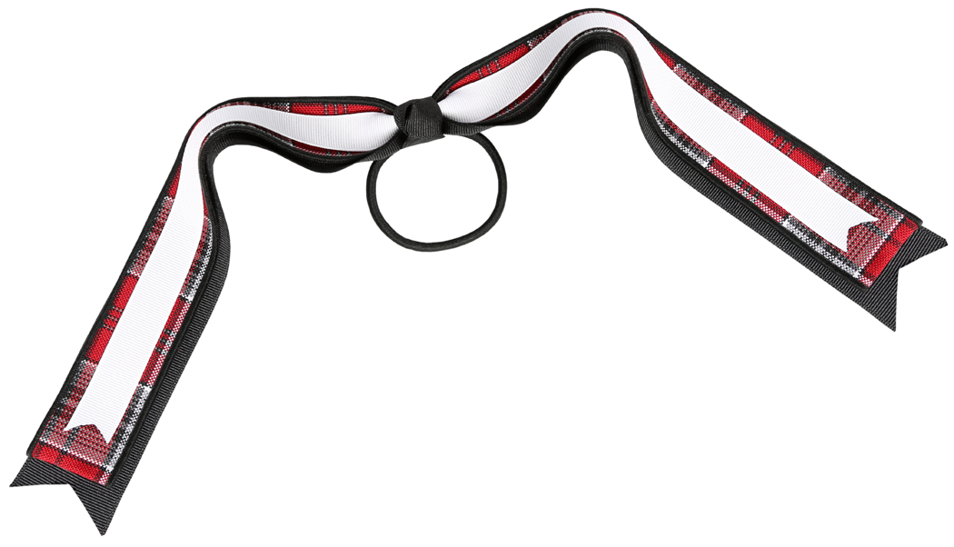 This slim hairtie with a long, festive streamer bow keeps hair neat and tidy while showing off a little school spirit.