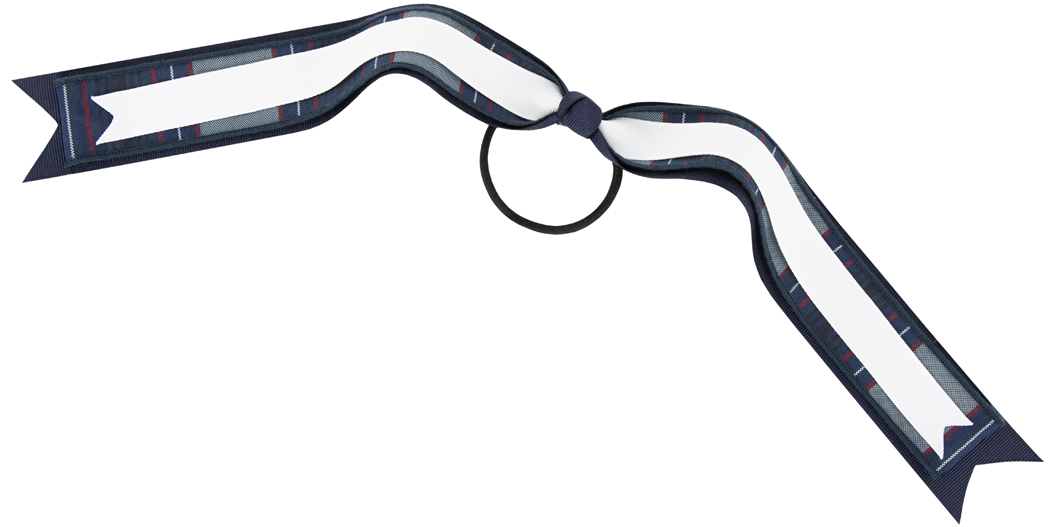 This slim hairtie with a long, festive streamer bow keeps hair neat and tidy while showing off a little school spirit.
