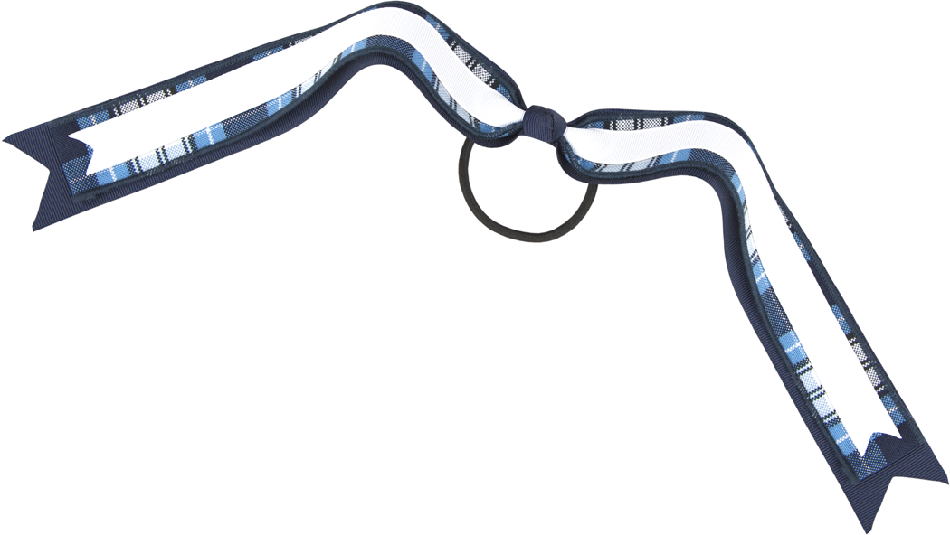 This slim hairtie with a long, festive streamer bow keeps hair neat and tidy while showing off a little school spirit.