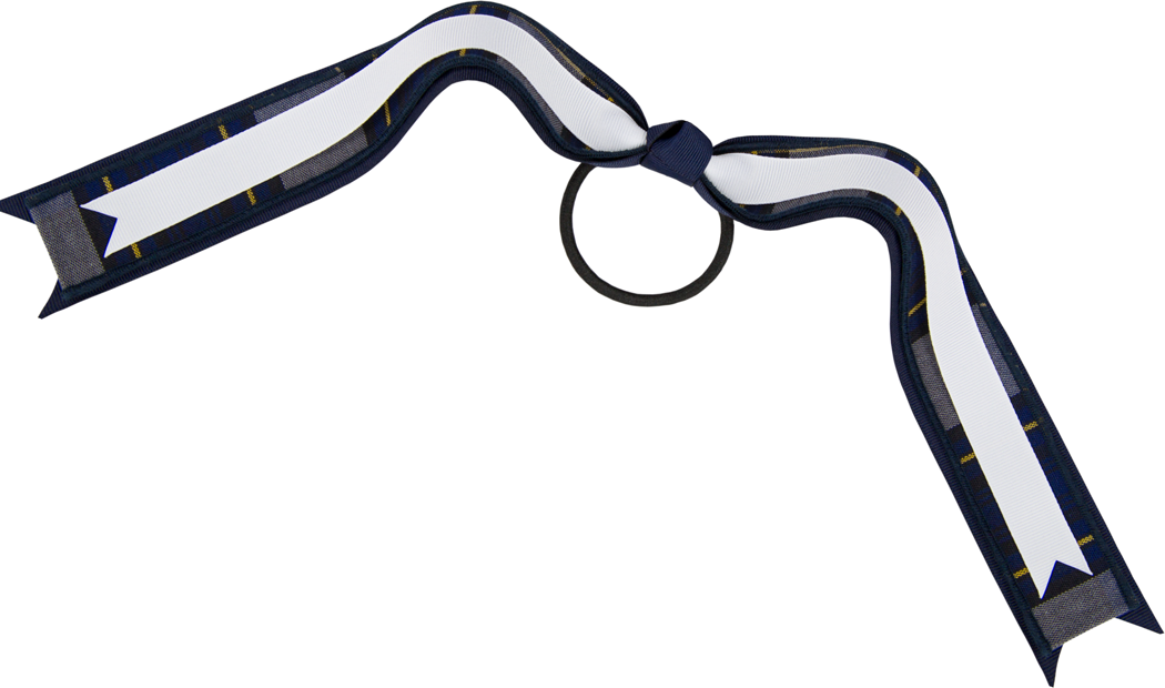 This slim hairtie with a long, festive streamer bow keeps hair neat and tidy while showing off a little school spirit.