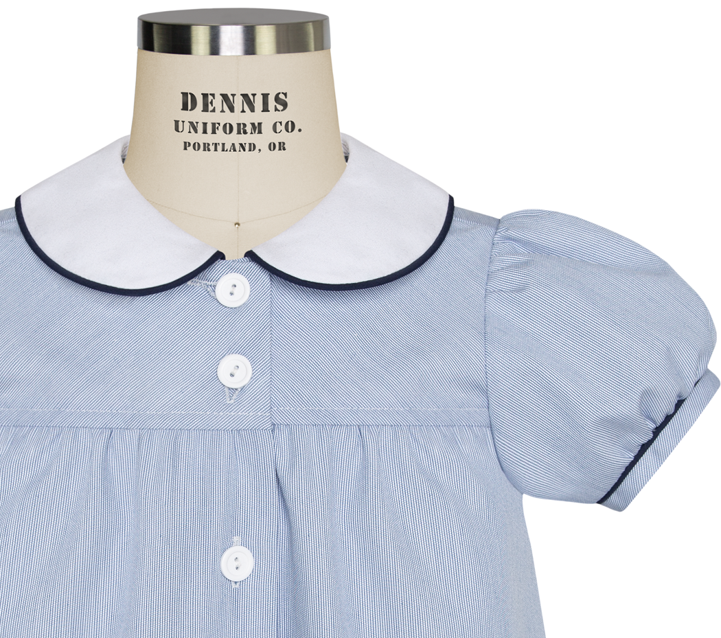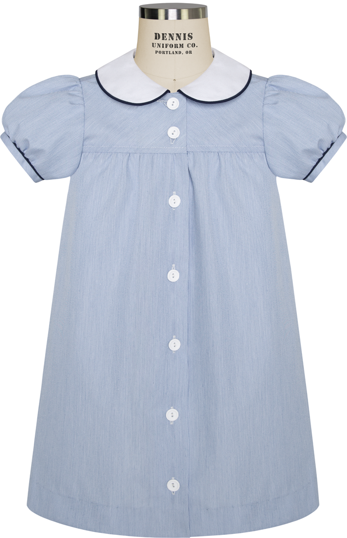 Cute and comfortable every day, our Peter Pan Collar Dress is a fun choice for young students' wardrobes. Including sleeve piping, a high yoke and full skirt for added comfort.