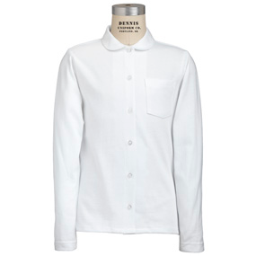 Our Long Sleeve Peter Pan Collar Blouse is always stylish and fun. With soft but crisp-looking solid weight piqué weave, a simple, trim fit and a front pocket, this blouse offers it all.