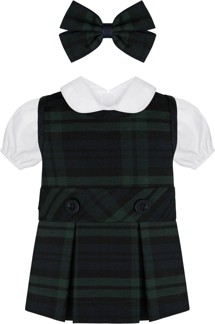- Jumper with blouse and matching bow fits dolls or stuffed animals