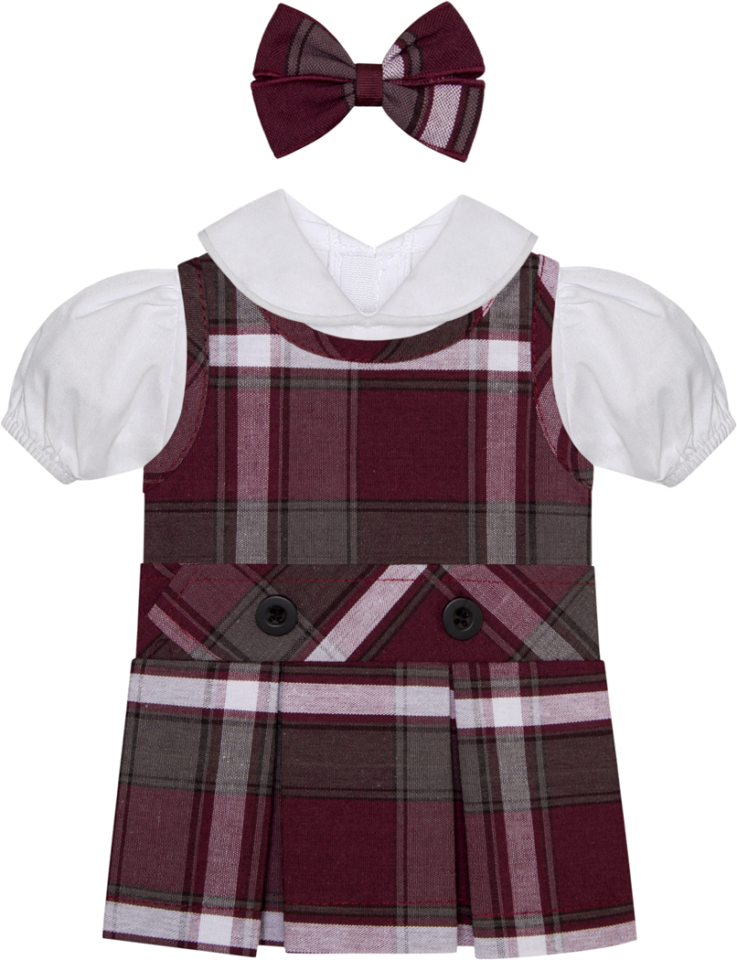 - Jumper with blouse and matching bow fits dolls or stuffed animals