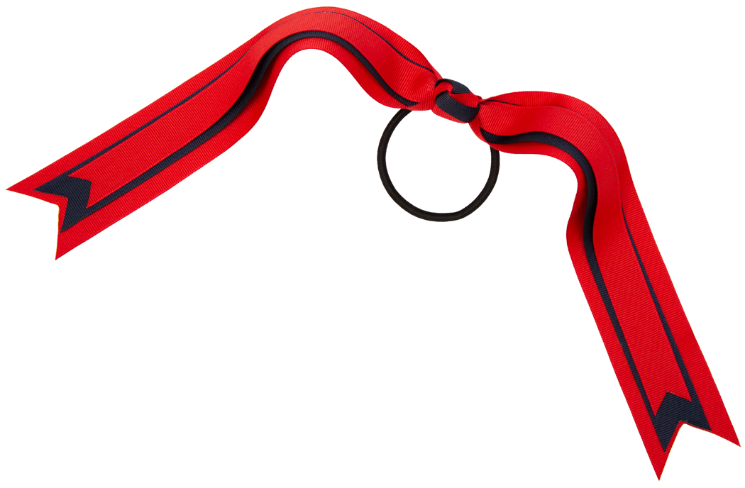 This slim hairtie with long festive streamer bow keeps hair neat and tidy while showing off a little school spirit.