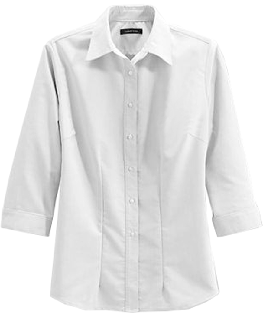 Our thick woven Oxford fabric 3/4 Sleeve Fitted Blouse offers coverage and modesty as well as a tailored fit. Wear tucked in or out for your choice on styles!