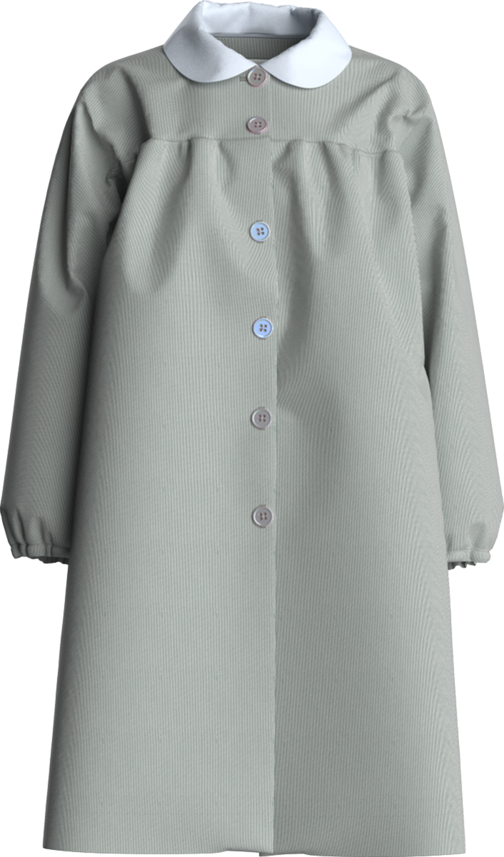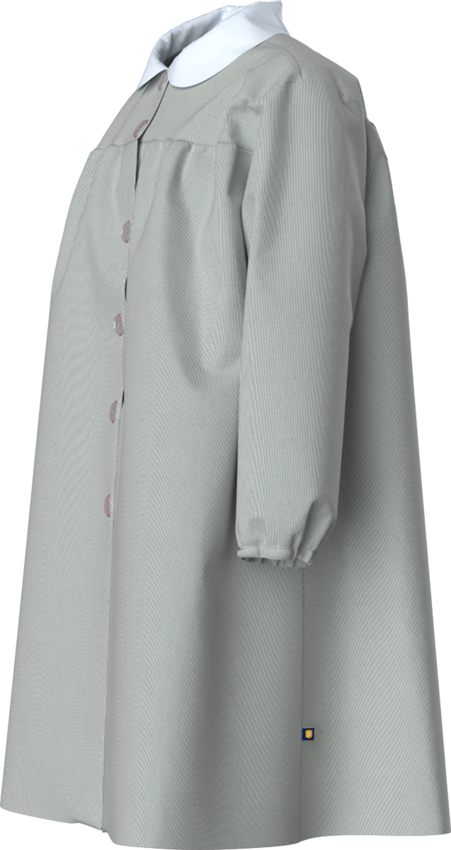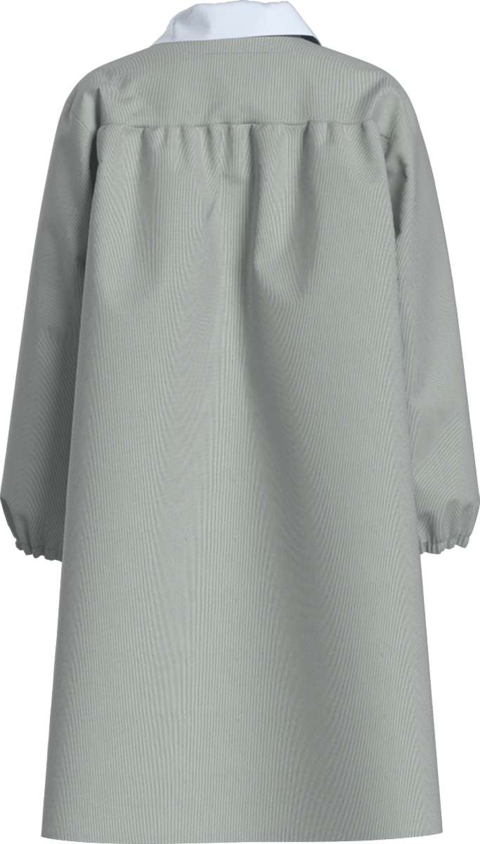 Keep your student clean and cute with our 75% Polyester / 25% Cotton easy-dressing Button-Front Pinfeather Art Smock, perfect for layering atop regular uniform pieces.