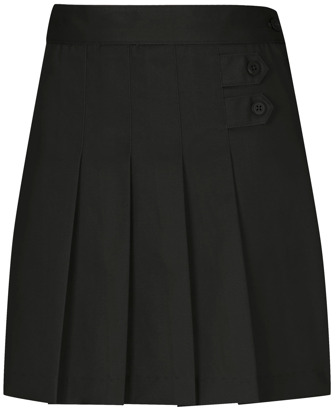 Our Stretch Pleated Tab Scooter Skort is a playful core uniform piece, offering built-in shorts for ease of mobility and added modesty. With a durable twill fabric and decorative button tabs, students of many ages look great in this item.